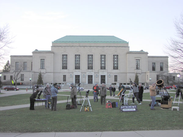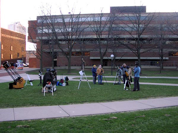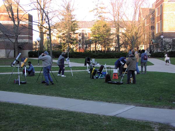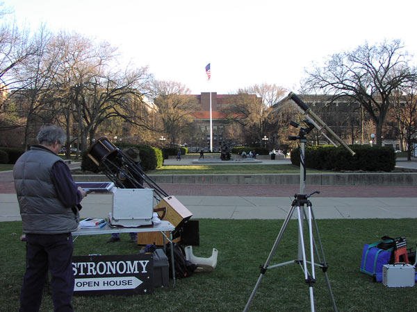 On April 4, 2009, the Lowbrows and the Student Astronomical Society hosted an open house on the University of Michigan central campus. The following photographs were taken that evening.