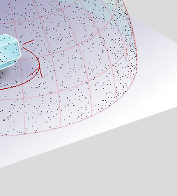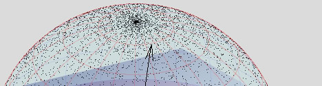 Each dot represents the tip of a line perpendicular to a side face of the crystal as it rotates about two axes. The dots concentrate at the zenith. Side faces spend more time nearly horizontal and so produce pillars. |