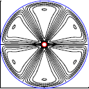 an axisymmetric swimmer J. Peng and S. Alben, Bioinspir. Biomim. 2012 We consider a model jellyfish which swims by periodic body contractions, and sheds vorticity into the fluid at its outer edge according to the unsteady Kutta condition. We identify kinematic parameters which lead to swimming with high speed and small "cost of locomotion." |