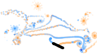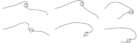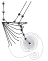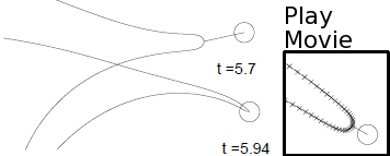 between a flexible filament and a point vortex S. Alben, J. Fluid Mech., 2012 A flexible filament is attracted to a point vortex when they move together as a coupled system. The point vortex collides with the filament at a finite time, with the separation distance scaling as the square root of time. We derive the power laws describing the collision. |