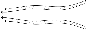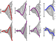 using a fin ray S. Alben, J. Fluid Mech., 2012 We calculate optimal driving motions for a fin ray, the skeletal structure of a fin. The fin ray is driven by heaving, pitching, and a less-studied motion called "shifting." We calculate the phases of shifting relative to heaving and pitching that maximize thrust power and efficiency. |