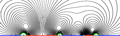 a charged line on a sphere S. Alben, Physical Review E, 78, 066603 (2008). We find equilibrium configurations of open and closed lines of charge on a sphere, and track them with respect to varying sphere radius. Closed lines transition from a circle to a spiral-like shape through two low-wave-number bifurcations ("baseball seam" and "twist") which minimize Coulomb energy. The spiral shape is the unique stable equilibrium of the closed line. Other unstable equilibria arise through tip-splitting events. An open line transitions smoothly from an arc of a great circle to a spiral as the sphere radius decreases. Under repulsive potentials with faster-than-Coulomb power-law decay, the spiral is tighter in initial stages of sphere shrinkage, but at later stages of shrinkage the equilibria for all repulsive potentials converge on a spiral with uniform spacing between turns. Multiple stable equilibria of the open line are observed. |