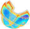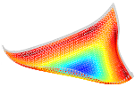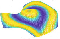 S. Alben, Adv. Comput. Math., 2014 We present a simple discrete formulation of bilayer bending and use it to compute equilibrium configurations of actuated bilayers with general initial shapes. We identify typical bending behaviors: overall bending directions along longest and shortest dimensions, inward bending at corners, curvature intensification near boundaries, and conical bending and partitioned bending zones in some cases. |