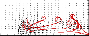 vortex sheet near a separation point S. Alben, Journal of Computational Physics (2010). Current methods for computing vortex sheet separation use a regularization parameter which is discontinuous from the body to the vortex sheet. We propose two methods for reducing the errors associated with the regularization parameter: the ``velocity smoothing" method and the ``tapered smoothing" method. In a model problem and a benchmark problem, both methods are found to converge much more rapidly (with exponents 3/2 and 2 versus 1/2 for the standard method) for similar computational expense. |