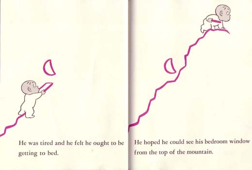 From Harold and the Purple Crayon, copyright Harper Collins, 1955. This image, from Harold and the Purple Crayon, shows Harold drawing a mountain.