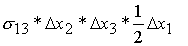 The moment arm is the distance to the middle of the cube, delta x3 divided by 2. Therefore, the total moment is: