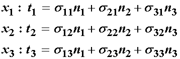 From the tetrahedral geometry, we can induce the fact that the three components of the normal vector n lie along the x1, x2 and x3 axes. These components may be written as: