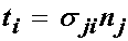 If we examine the above traction-stress vector equation, we see that it may be directly written in index notation as: