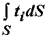 The second, and in reality more common, force we deal with in biosolid mechanics is the surface force. Surface forces typically occur due to contact between two bodies, or due to fluid pressure on a solid body. In biosolid mechanics, we see surface forces develop on skeletal joint surfaces due to contact between two joints. We also see stresses develop on skeletal tissue due to muscle forces generated that are transmitted to bones through tendons. Muscle is a unique tissue in that it can actively generate forces. However, a the microstructural level the mechanism of force generation is actually contact between two muscle proteins, actin and myosin. Surface forces on arteries and in the lung alveoli are developed due to blood fluid and gas pressure, respectively, on these tissues. Finally, surface forces on tissues may also be developed by contact of the human body with external objects, as occurs in a variety of sports and in car crashes. Surface forces are reckoned or written per unit area. Therefore, to determine the total surface force we integrate over the area: