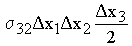 Now let's write the moment create by the stress s32. s32 acts on the face whose area is delta x1*delta x2, therefore the total force exerted by s32 is: