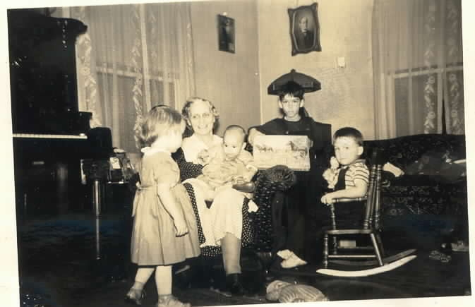 1941 December, Petrovna Wolfe with grandchildren Barbara and Duane Teegarden and Ramon and Douglas Wolfe. [76]