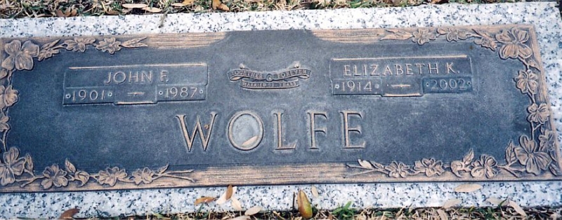 1987 John Franklin Wolfe died on Dec. 12, (reported at San Antonio, Bexar County, Texas, USA) and was buried at Mission Burial Park North, San Antonio, Bexar County, Texas, USA, born Mar. 12, 1901, (reported at Union City, Darke County, Ohio, USA). [46] [47] An obituary reports [48]: