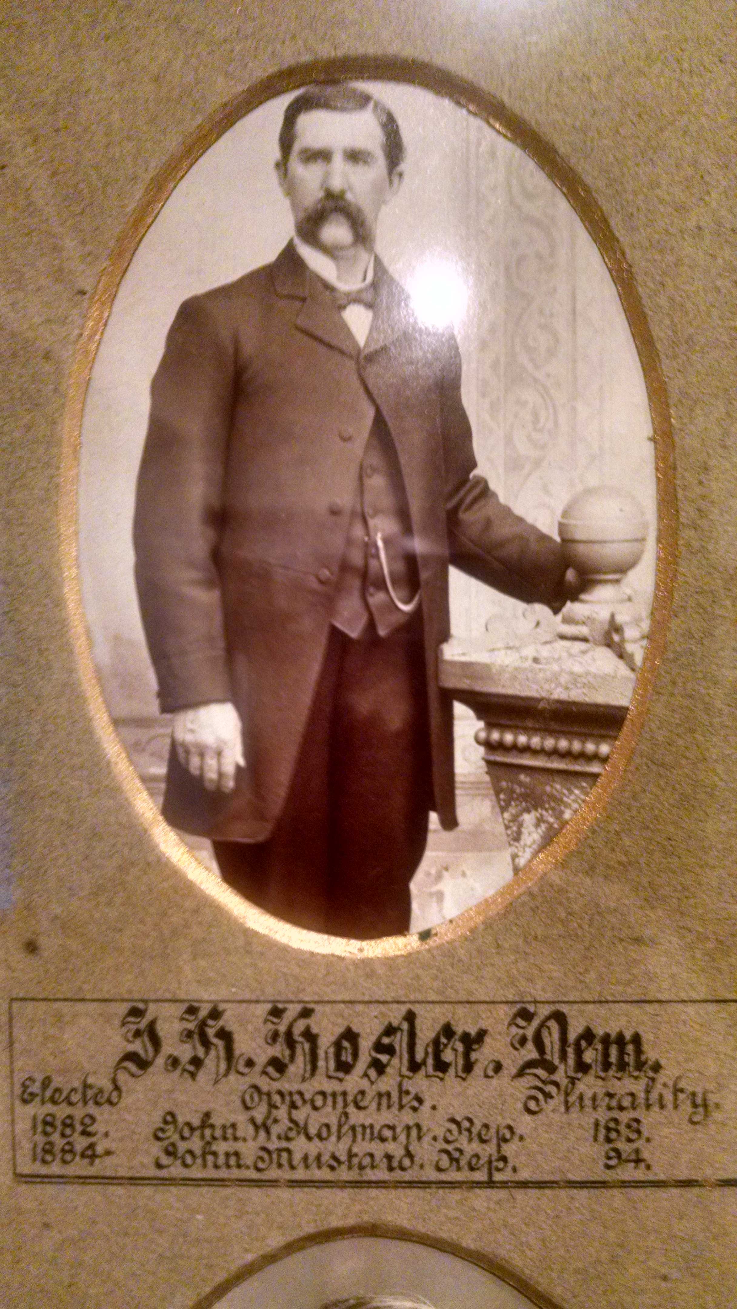 1882, 1884 Jacob Hosler was the sheriff of Columbia County, Washington. His photograph can be seen in the sheriff's office lobby, along with those of other county sheriffs.