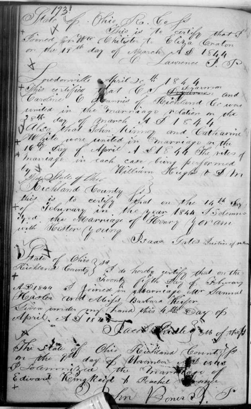1844 Samuel Hosler and Barbara Kiefer were married on February 25, in Richland County, Ohio. [2] [3] [Photocopy, Marriage record for Samuel Hosler and Barbara Kiefer.]