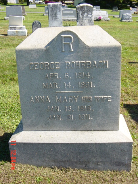 1891 George Rohrbach died on March 14 and was buried at New Hope United Church of Christ Cemetery, Glen Rock, York County, Pennsylvania. George Rohrbach was born on April 6, 1814. [11]