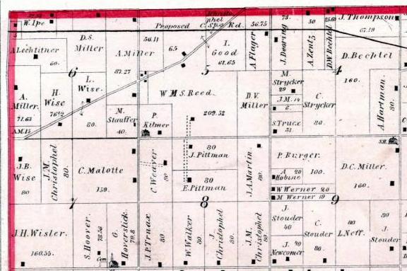 1861 W'm S Reed owned land in sections 5, 8, and 17 of Union Twp, Elkhart County, Indiana near sons-in-law JM Christophel (section 8), J Christophel (section 8), and BB Good (sections 5 and 8). [85]