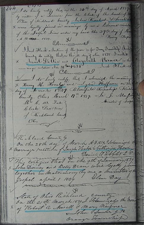 1839 Lydia Hoffman and Henry Hosler [Horsler] were married on March 17 in Richland County, Ohio. [11] [12] [13]