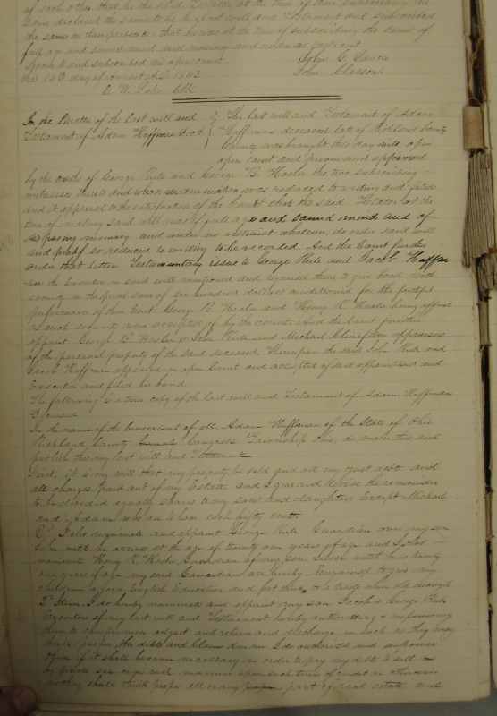 1843 Henry R Hosler was appointed guardian to Jesse Hoffman, Lydia's brother, upon the death of Lydia's father, John Adam Hoffman [20] [Photocopy, Adam Hoffman's estate, 1843, Richland County, Ohio.]