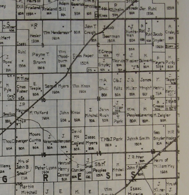 1856 Henry Hosler purchased 30 acres in Morrow County, Ohio [section 3, Twp 18] from William and Mary Ruhl. The deed was dated December 1 and was witnessed by Henry and George Ruhl. [27]