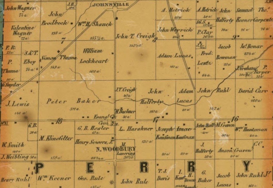 [48] D. J. Lake, Atlas of Morrow Co., Ohio (Philadelphia, Pennsylvania: C. O. Titus, 1871) 17, Perry Twp, [FHLCatalog].