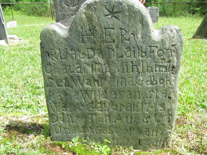 1768 Catharina Barbara Mulheim, daughter of Catharina Mulheim, was baptized in March, 1768 with sponsors Peter and Catharina Study. Her baptism was recorded in Pastor Jacob Lischy's records. [29]