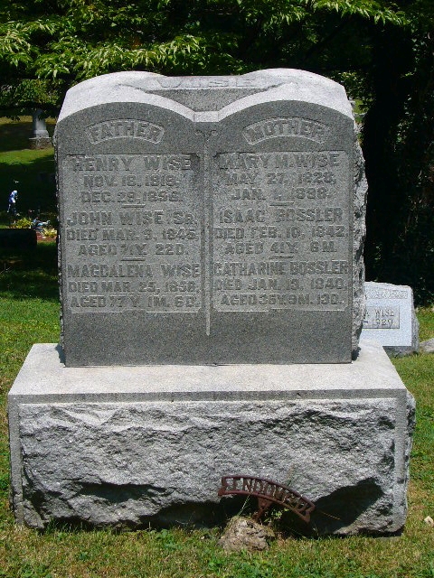 1843 Henry Wise and Mary Bossler were married on March 7, in Richland County, Ohio. [1] [2]