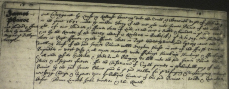 1687 James Pharoe witnessed a deed between William Hickson and John Cheshire. [42]