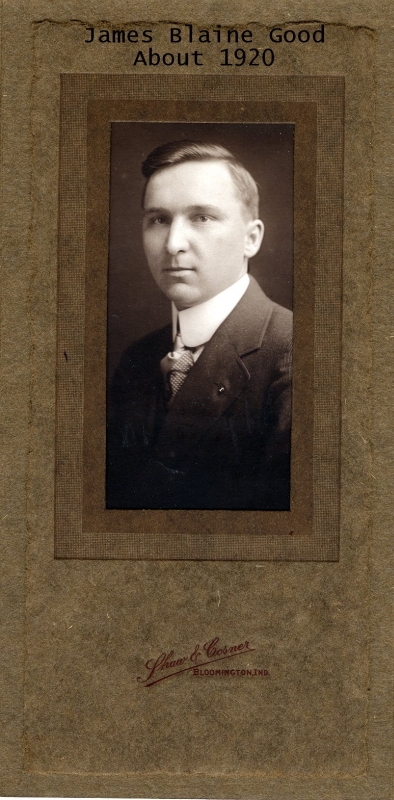 1920 James B. Good (age 27) and Beryl Good (age 27) lived at Buck Creek Twp, Hancock County, Indiana. James was a high school teacher. [21] [22] [23]