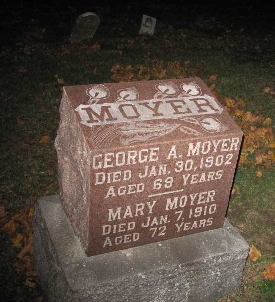 1902 George A. Moyer died on January 30 and was buried at Harrison Chapel Cemetery, Goshen, Elkhart County, Indiana. George A. Moyer was born on March 1, 1833. [19][20]