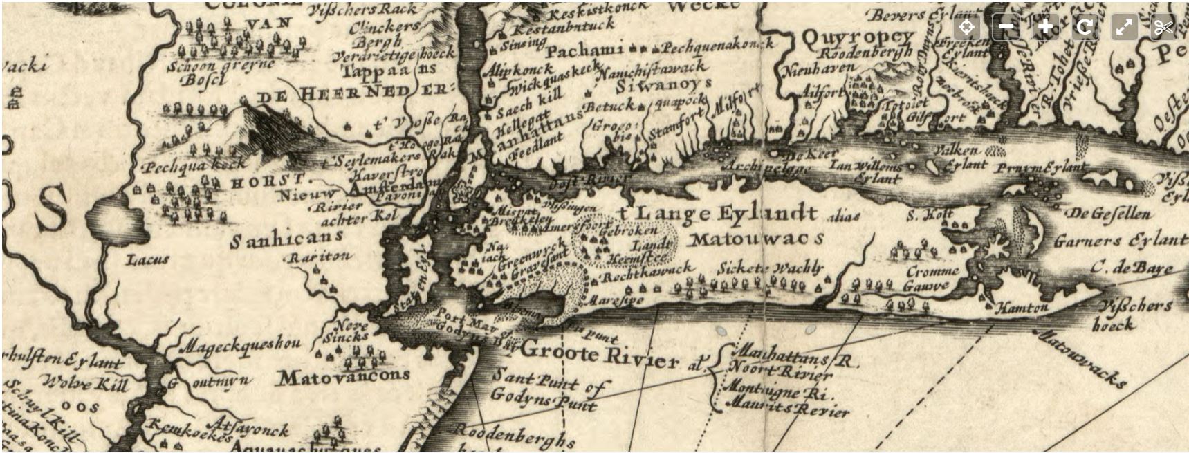 [5] Nicolaes Visscher, Novi Belgii Novæque Angliæ : nec non partis Virginiæ tabula multis in locis emendata (New Amsterdam) (Amsterdam: 1685), [LibraryOfCongress Map], [LibraryOfCongress].