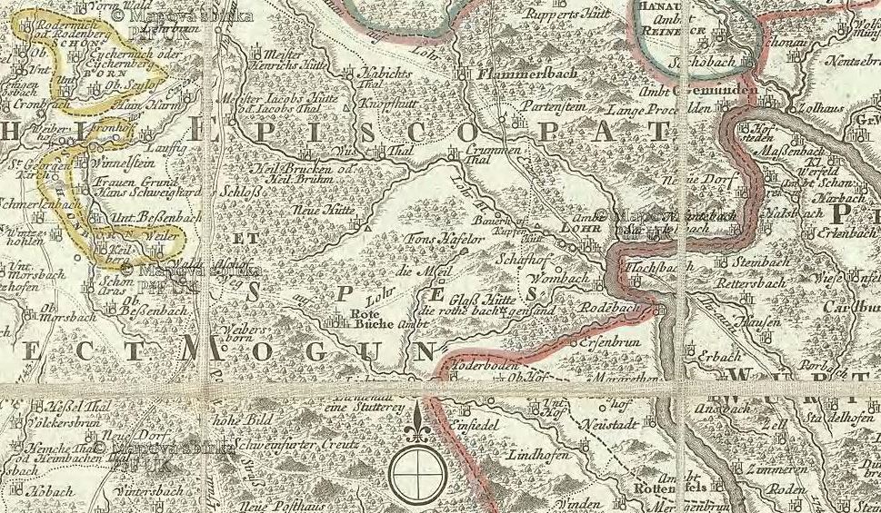1406 The name Kunkel was listed in the guild order of glassmakers. The guild met at "ufm Bechliz" which most probably is a small village near Heigenbruecken called Baechles. The count of Rieneck was the protector of this guild until 1559 when his line ended and the whole of Spessart fell back to Mainz diocese. Four glassmaking places were working out of which developped the 4 villages; Neuhuetten (before called "the hut on Breydenstein"), Heigenbruecken, Krommenthal and Habischsthal.