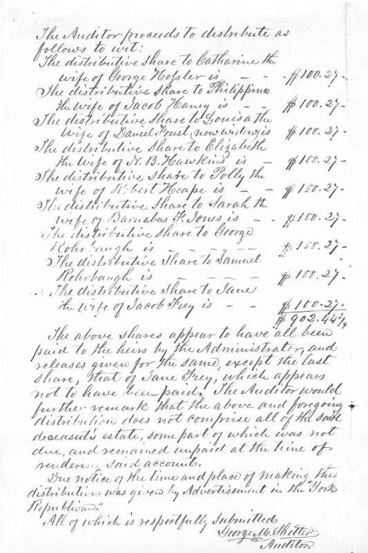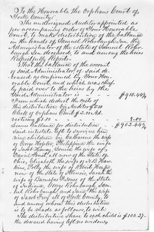 Samuel Rohrbaugh/Rohrbach Estate Settlement 1855