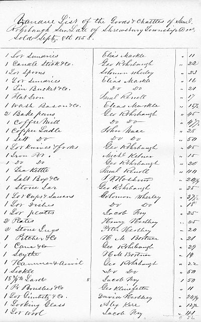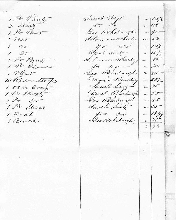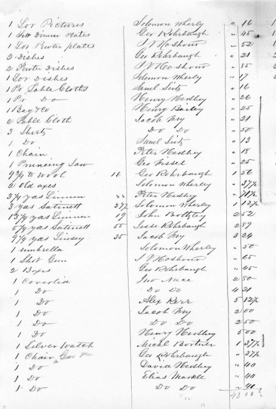 - Photocopy Vendu sale of Samuel Rohrbach estate, 1855, page 4.