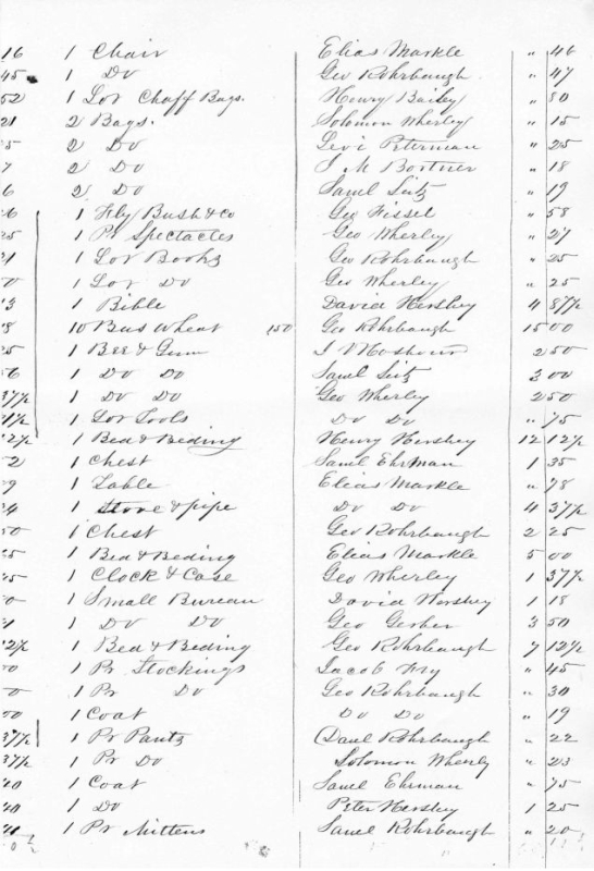 - Photocopy Vendu sale of Samuel Rohrbach estate, 1855, page 2.