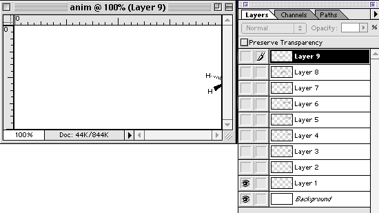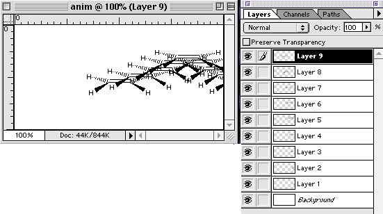 This help page is based on Photoshop 5.0 which has the ability to create "layers" in an image. If you are not using this version of Photoshop (or are using another graphics program which cannot create layers in an image) then click here to view an alternate way to create an animation.