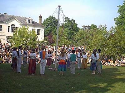 Well my friends, as we exit the Bartholomew Fair, take one last look around. As dusk is approaching we should be able to see a crowd gathering to dance at the pole in the center of the green. This is the time to really unwind and enjoy each other's company. Please notice that class status is not a determining factor in the May-Pole dance and everyone is welcome, as long as they are not dressed as common servants that is. Let us grab a ribbon and join the fun as we twirl and spin. For those of you just joining us from the tavern or ale houses, be careful not to over exert yourselves as we have already spoiled our costumes with the Roast Pig from earlier!!