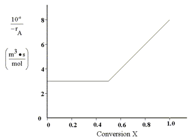 The following graph plots the reaction rate (-rA) versus the PFR volume: