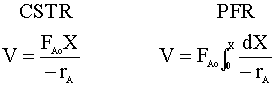 For now, we will assume that conversion (X) will be less that 0.5. We start with the CSTR mole balance: