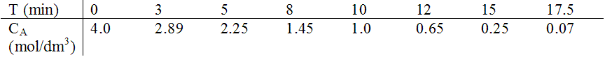was carried out in a batch reactor and the following concentration-time data were obtained: