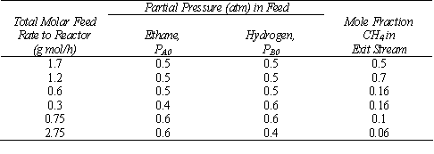 (a) Determine the rate law parameters from the data in the table below. There are four spnning baskets, each with 10 g of catalyst. Only hydrogen and ethane are fed to the reactor at 300 °C