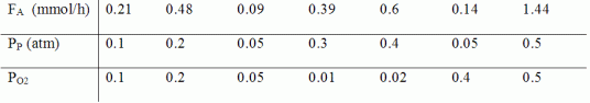 The reaction was carried out in a differential reactor with 0.5 g of catalyst at 623 K. From the data below, determine the reaction orders with respect to propene