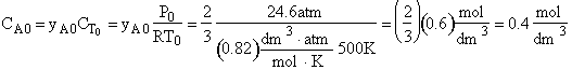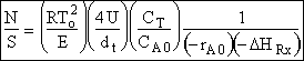 is to be carried out in a PFR with external cooling. The entering pressure is 24.6 atm and the entering temperature is 227°C. The feed is 66.7% A and 33.3% inert. The ambient temperature in the heat exchange is constant at 500K. What is the largest tube diameter one can have and not have runaway.