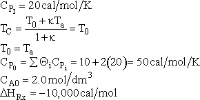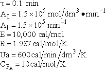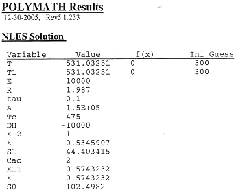 We shall use the same Polymath program shown in Table 1 to solve for S0 and S1. Note, in the Polymath program for this zero order reaction we let T1 = T* and then solve Equation (4) for T1.