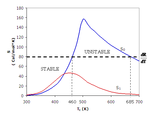 Construct the stability curves for a zero order reaction, (S0), and a first order reaction, (S1), as a function of TC.