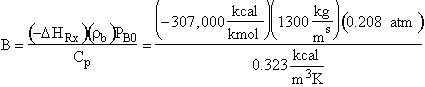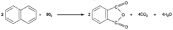 The oxidation is to be carried out in a packed bed reactor with cooling. The ambient temperature is constant along the length of the reactor. The pressure is 1 atm and the partial pressure of naphthalene is varied between 0.01 atm and 0.02 atm. The entering temperature is varied between 600 and 675.