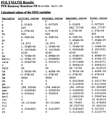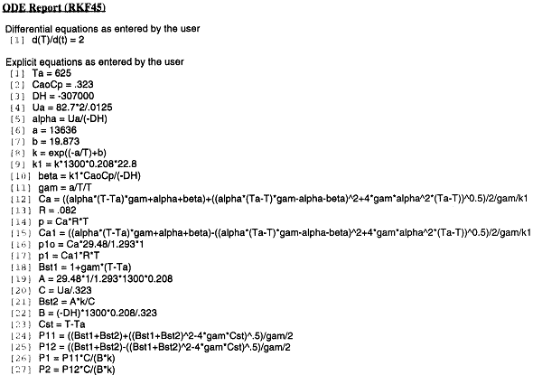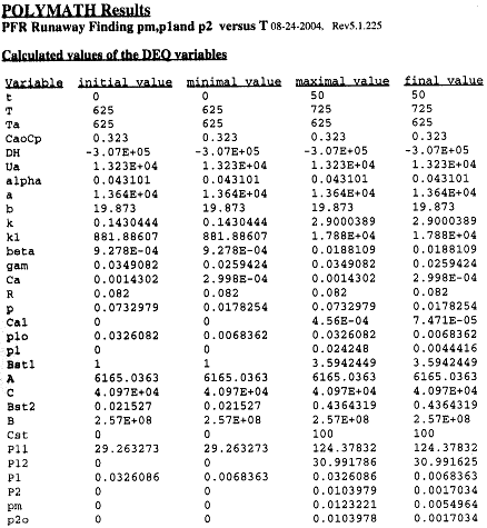 The Polymath program to calculate the trajectories is shown in Table R8.2-2.