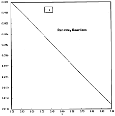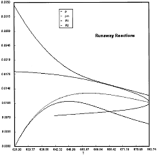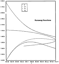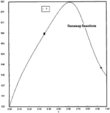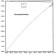 One notes that we are at the onset of runaway. The PA vs. T trajectory is tangent to the inflection point curve (criteria 2).