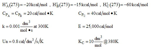 - Repeat (a) when a heat exchanger is added, Ua = 0.8 cal/dm3/s/K, and the coolant temperature is constant at Ta = 320 K.