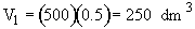 $V_1 = (500 - 100) (0.5) = 200 dm^3$