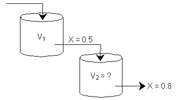 c) What CSTR volume must be added to raise the conversion in Part (b) to 80%?      V2 = 30 dm3